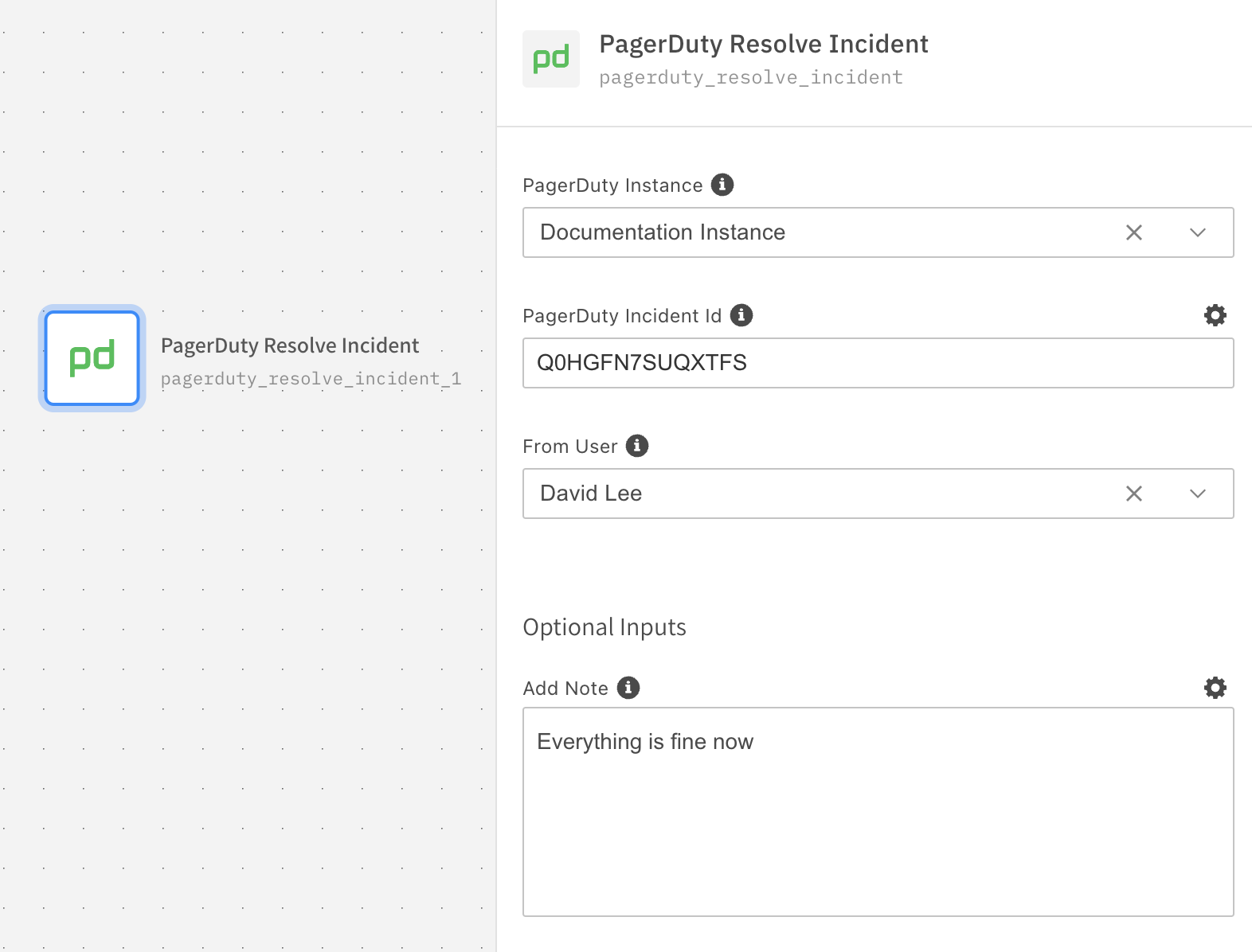 Use the action to resolve an incident in PagerDuty.